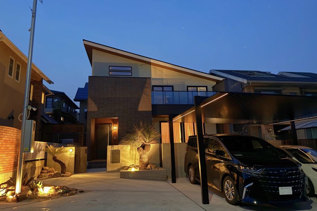 照明・植栽・素材の一体感を持った“完成度の高い外観”に仕上がります。