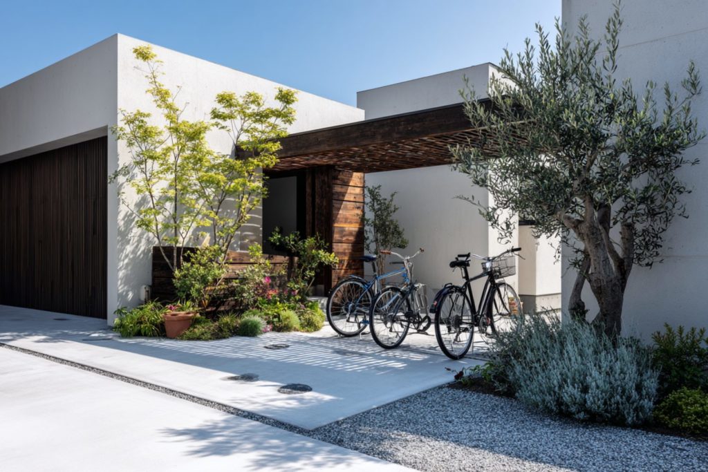 駐輪スペースは玄関動線・駐車場の配置とも深く関わるため、家づくりの初期段階で計画することで、より機能的で美しい外構に仕上がります。