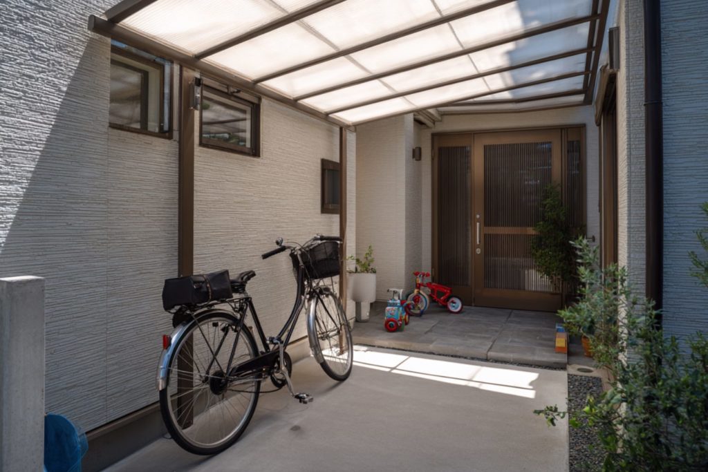 敷地が限られている住宅では、あえて屋根をつけない「ミニマムな駐輪スペース」も有効です。