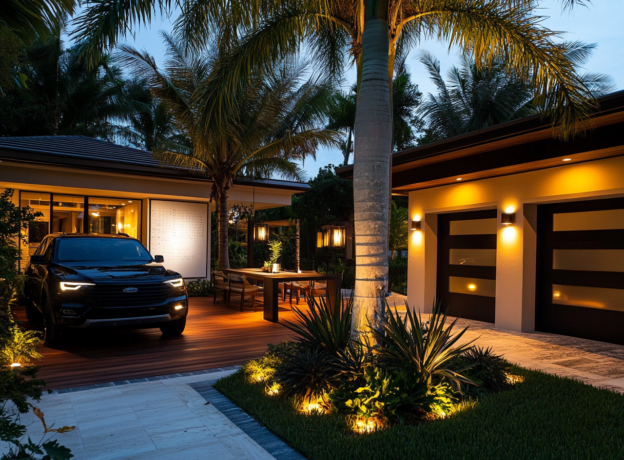 奥様のライフスタイルを考慮した贅沢で機能的な外構を実現します。まず、リビングの延長として「デッキ」を設置し、アウトドアリビングとしてリラックスできるスペースを提供します。次に、家へのアクセスをスムーズにする「アプローチ」をデザインし、門から玄関までの道のりを美しく演出します。「門柱」をシンプルで洗練されたデザインで設置し、家の印象を引き締めます。また、駐車場と「カーポート」を整備し、車を守りながらも美しい外観を保ちます。