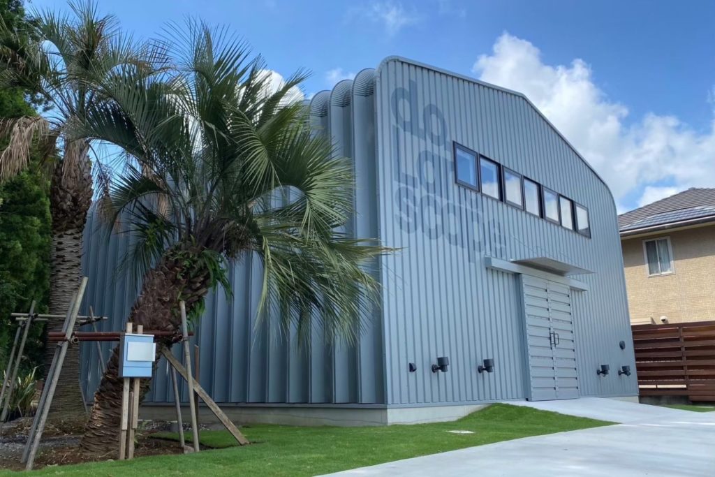 外観から感じる非日常空間 ― 南国リゾート風の店舗型ガレージ